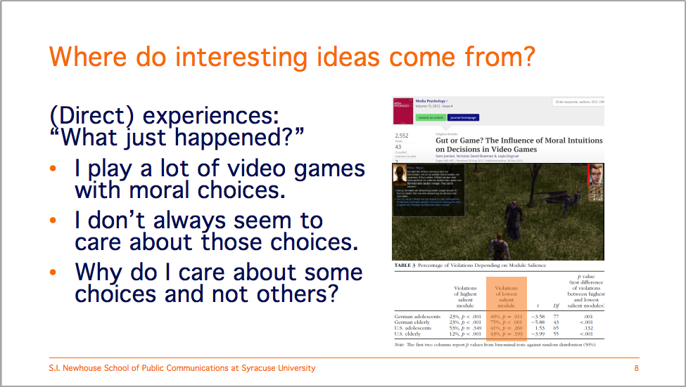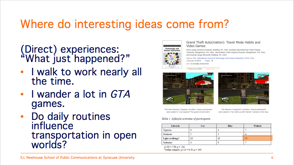 当被问到电子游戏是什么?鲍曼教授说,它是一系列有趣的决定,我们可以在电子游戏中实现很多的可能性。正是因为这些有趣的决定,激发了鲍曼教授做出游戏研究的想法。然而这些有趣的想法从何而来,又是如何成为科学研究的?