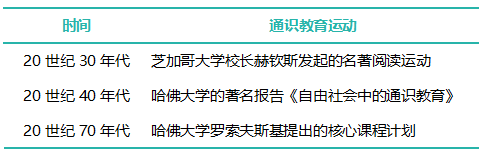 表1 20世纪以来美国的三次通识教育运动