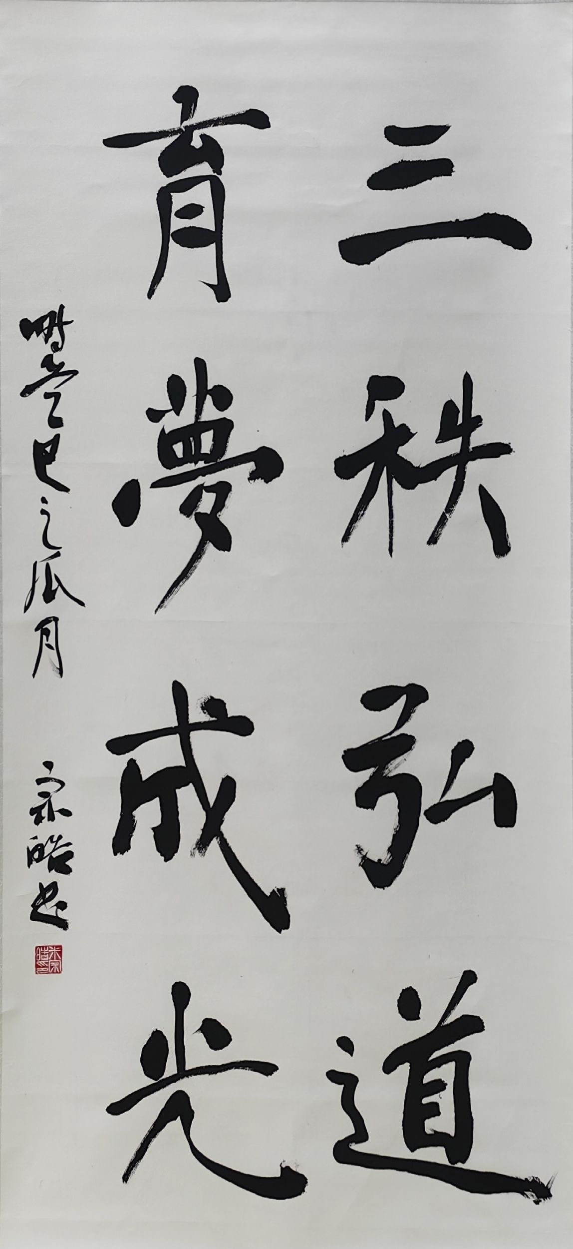 此次展览由校工会主办,校书画研究会、孔子青年社区、墨之轩书法社承办,共展出作品40幅,涵盖绘画与书法两大类别,其中绘画作品9幅、书法作品31幅,囊括篆、隶、草、行、楷五体,以及刻字作品,绘画形式有国画、油画、水彩、版面丙烯、装饰画;作品来源包含教工、学生、离退休老师等。