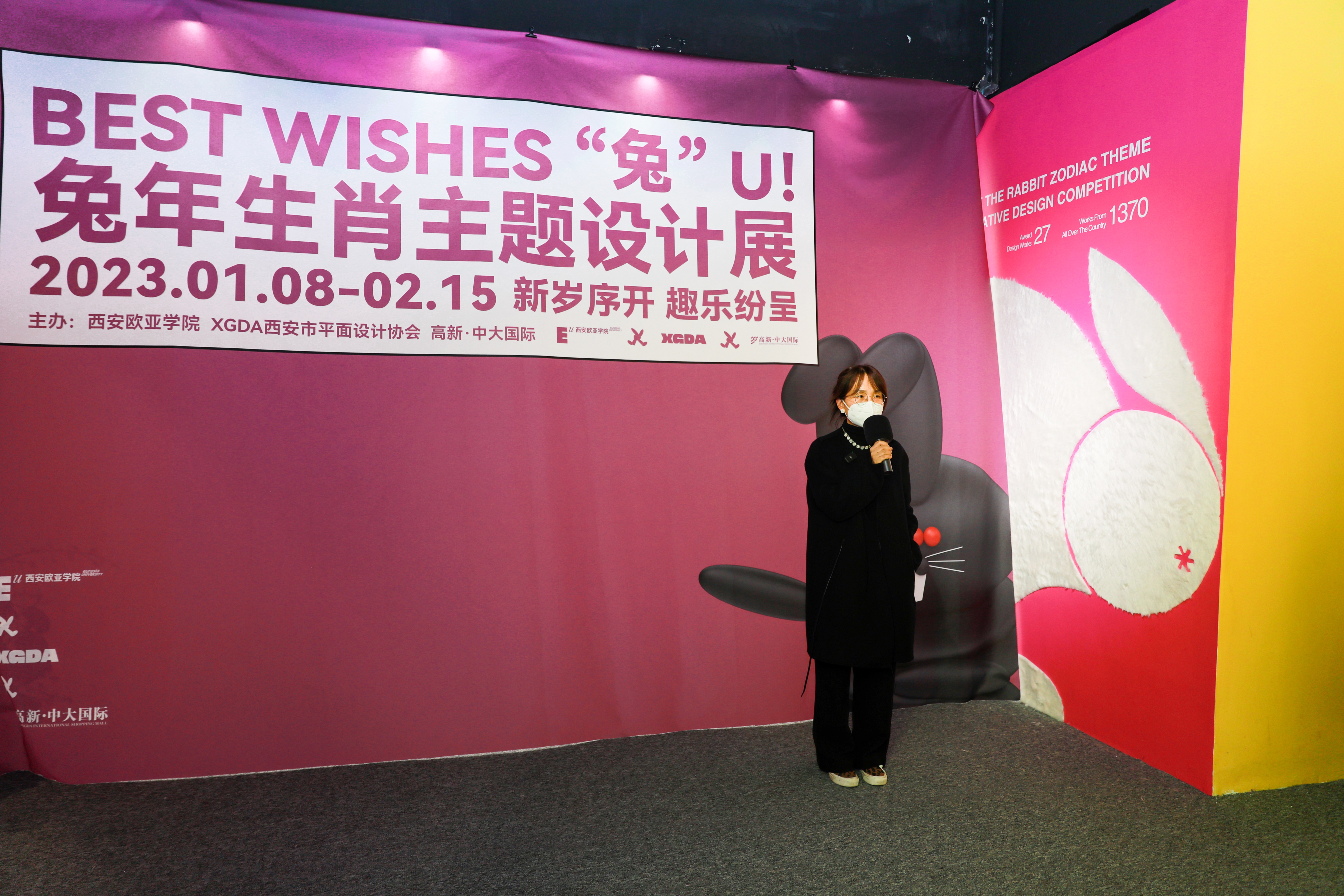 “艺术设计展览的精髓在‘精’,展出的作品要精彩,兔年展览凝结了兔年主题设计大赛中的精华作品,千余件作品经过多轮评选,最终筛选出27件优秀作品呈现在今天的展览中,是XGDA携手欧亚、高新中大国际的诚意之作。”西安市平面设计协会副主席姜延在发言中提到。