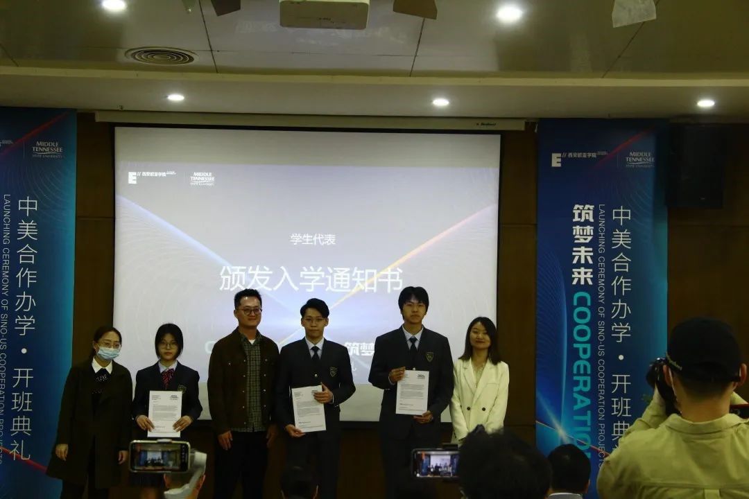 各位学生代表依次上台,由老师为他们颁发入学通知书。从学生们的笑容和眼神中,可以看出他们对未来四年中外合作办学学习生活的无限期待。