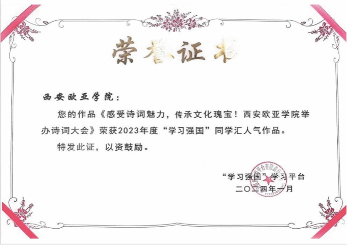 古诗词是中华传统文化的精髓,吟诵与演绎诗词,以多样形式都可以传颂经典。近日,由sunbet申慱官网孔子青年社区举办的“声诗润秋弦,文墨贯古今”诗词大会形成的作品《感受诗词魅力,传承文化瑰宝!sunbet申慱官网举办诗词大会》荣获了2023年度“学习强国”同学汇热人气作品!