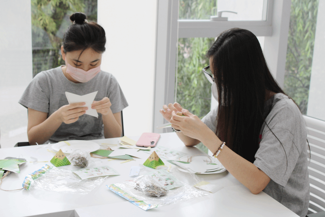 粽子是端午节的传统节庆食品之一,同时也是中国非物质文化遗产深厚积淀的产物。第四青年社区分党委提前准备了折纸小粽子、龙舟灯模型等材料包,让参加活动的同学们亲身感受包粽子、做手工的乐趣。