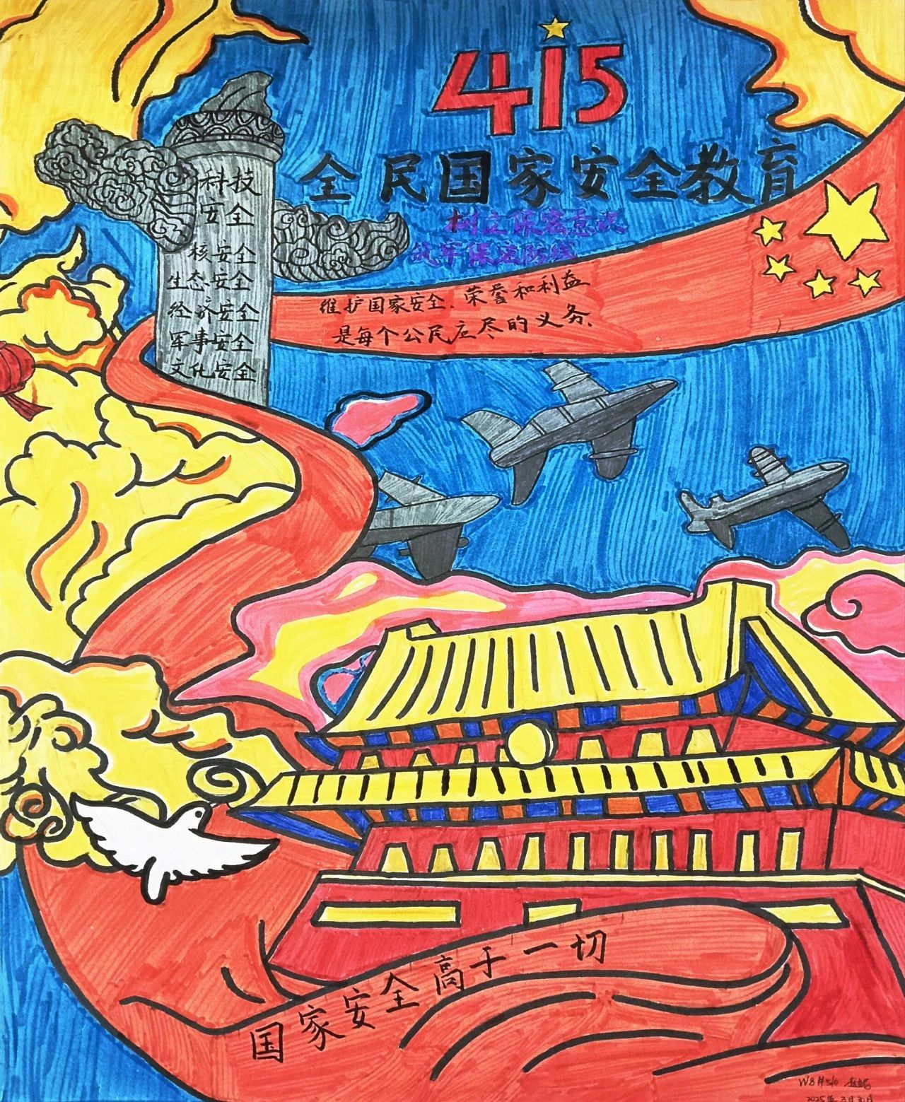 为深入学习宣传贯彻总体国家安全观,扎实推动国家安全教育向纵深发展,引导学生牢固树立“国家安全,人人有责”的使命意识,自觉将维护国家安全的理念转化为日常生活中的实际行动,近日,第二青年社区分党委开展了国家安全教育主题手抄报评选活动。