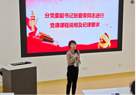 随后,分党委副书记张爱荣对发展对象培训课程进行了详细说明和要求。她首先结合党员发展培养要求和党校培训工作部署,围绕本次培训的课程设置、教学内容及考核办法展开介绍,重点说明了培训期间的纪律要求与注意事项。她强调,全体学员严格遵守培训班纪律,认真完成学习任务,确保培训取得实效。