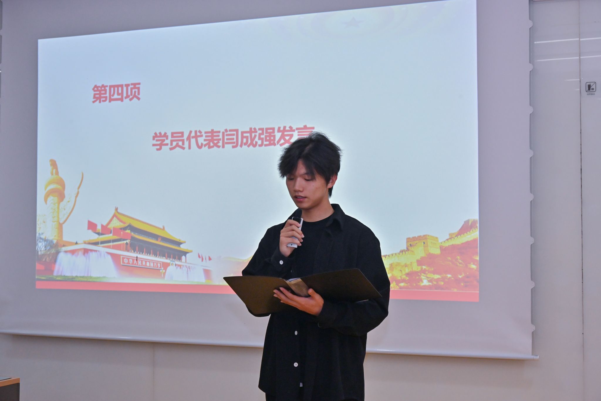 学员代表闫成强在发言中分享了参与志愿服务、走访老兵的亲身经历。他动情地说:"老党员那句'我是共产党员,这些东西该送给更需要的年轻人',让我深刻体会到共产党人的初心与担当。作为新时代青年,我们要传承红色基因,在服务人民中践行党的宗旨,在奉献社会中彰显人生价值。"