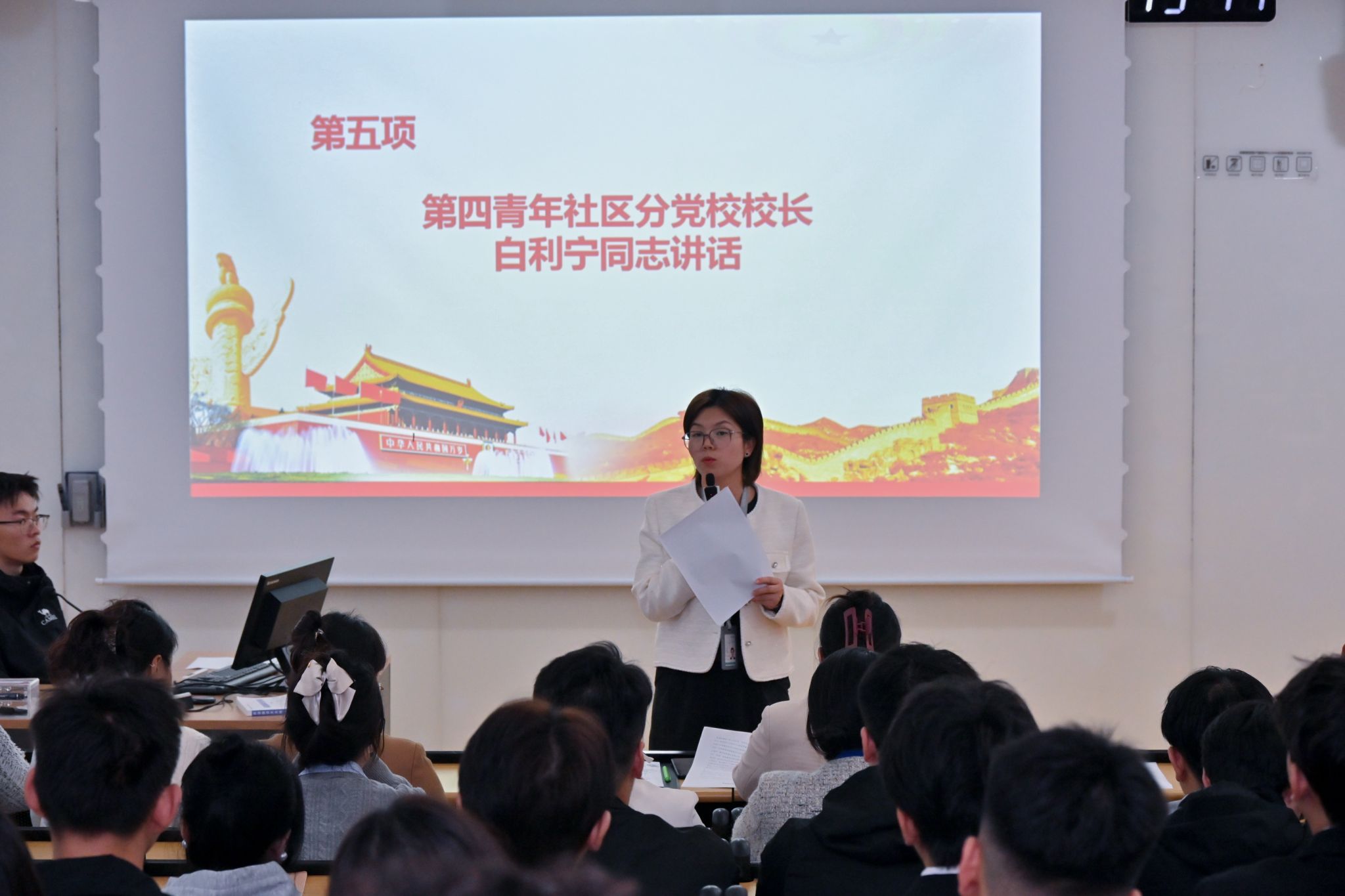 2025年11月4日,sunbet申慱官网第四青年社区分党委在南D-001教室隆重举行2025年下半年入党积极分子培训班开班典礼。分党委书记白利宁、副书记黎舒婷、各党支部书记及本期94名入党积极分子参加典礼。