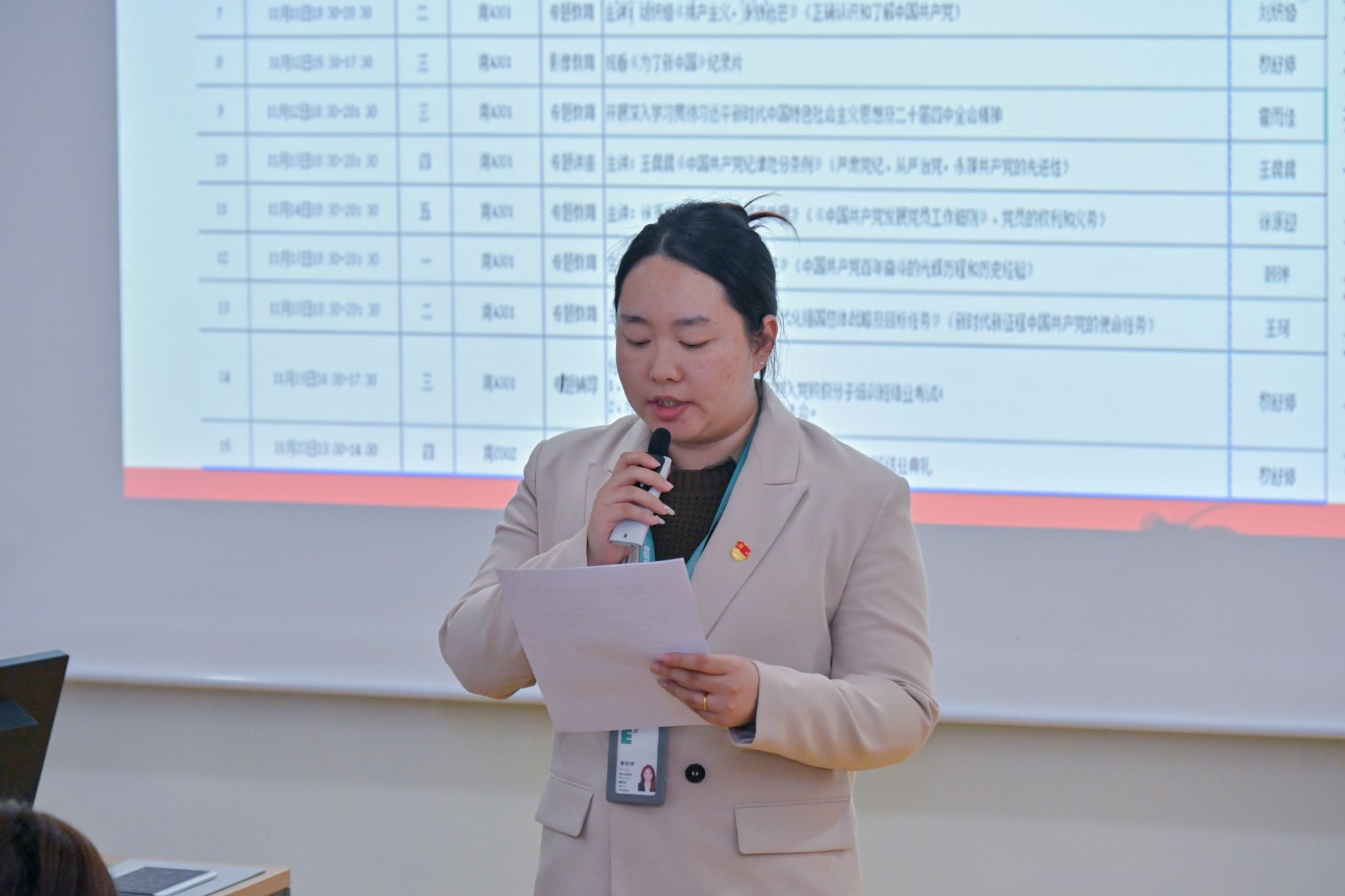 典礼在庄严的国歌声中拉开帷幕。分党委副书记黎舒婷首先宣读了党课培训管理办法,要求全体学员严格遵守培训纪律,端正学习态度,深刻认识本次培训的政治意义。她强调,要将理论学习与党性锻炼相结合,以实际行动展现入党积极分子的政治觉悟和责任担当。