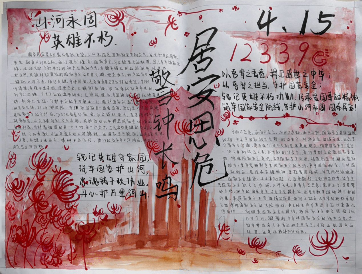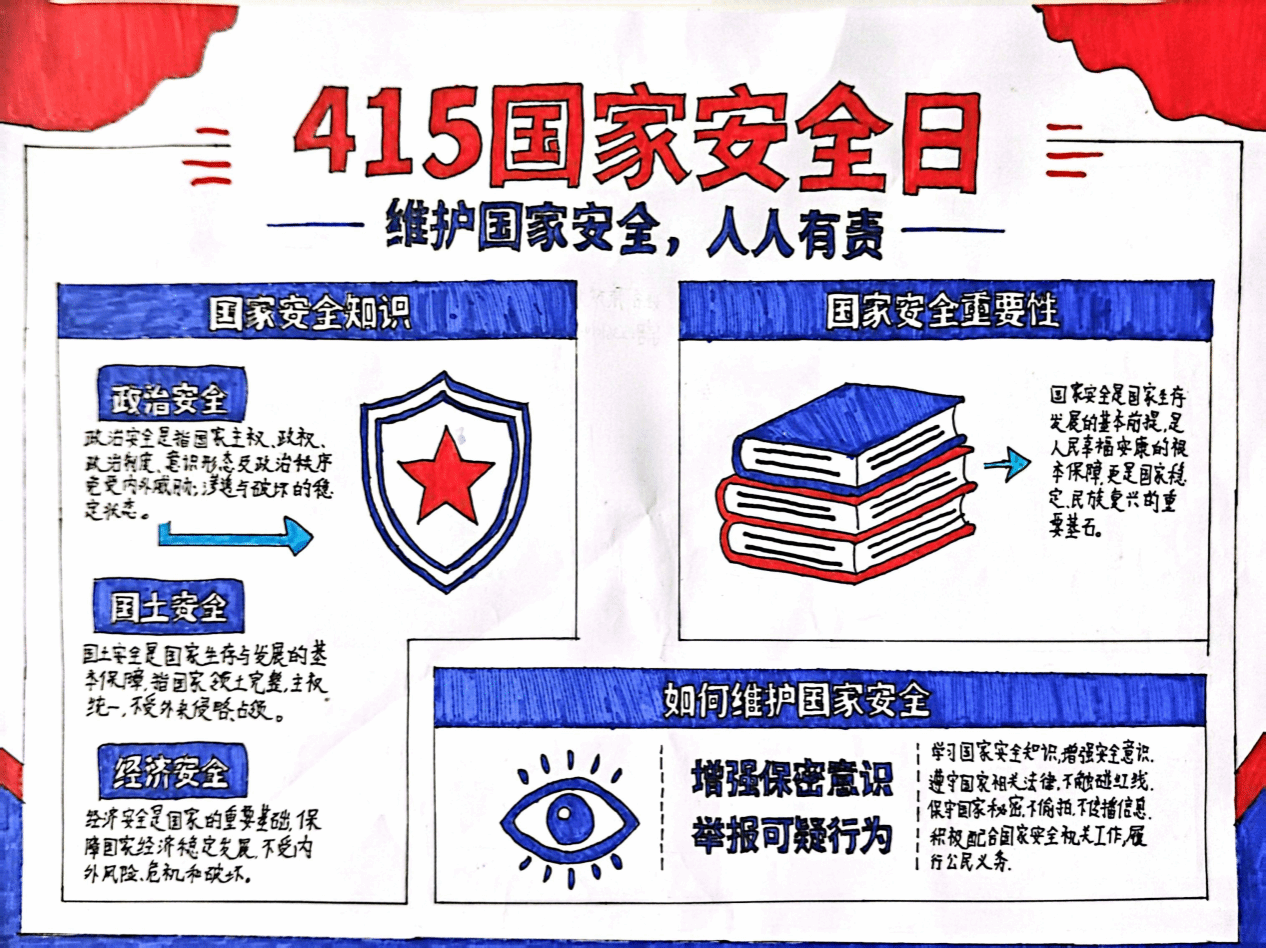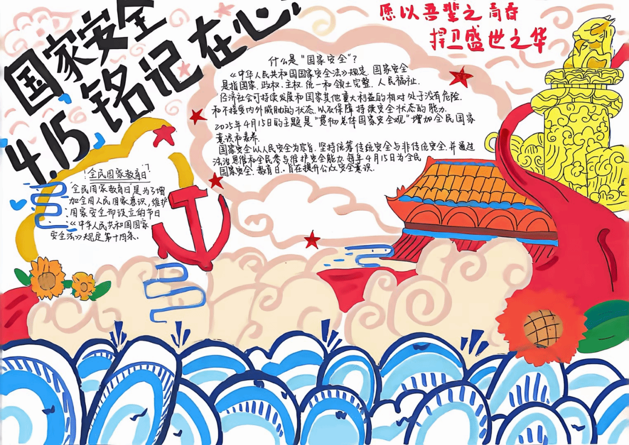 为深入贯彻落实全民国家安全教育日宣传教育要求,切实增强社区党员与青年学生的国家安全意识,筑牢国家安全思想防线,4月13日中午,第四青年社区分党委组织开展全民国家安全教育日主题手抄报比赛,推动总体国家安全观入脑入心、落地见效。