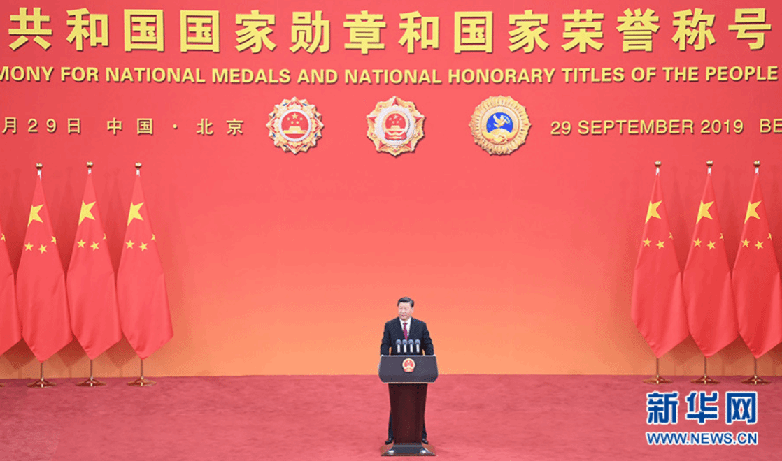习近平向国家勋章和国家荣誉称号获得者颁授勋章奖章并发表重要讲话