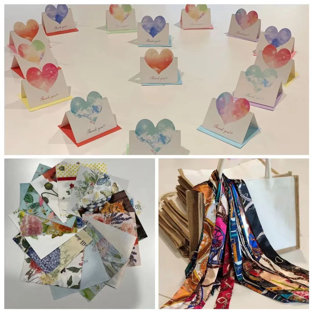 活动开始,工作人员首先给老师们发放DIY制作材料包,如丝带、花纹纸、胶水、刷子等,并现场播放制作教程视频。只见老师们先精挑细选出自己心仪的专用彩色花纹纸,并按照包的大小设计出不同的造型图案,然后经过裁剪、拼接、粘贴,一幅幅漂亮、生动又可爱的作品就制作成功了。