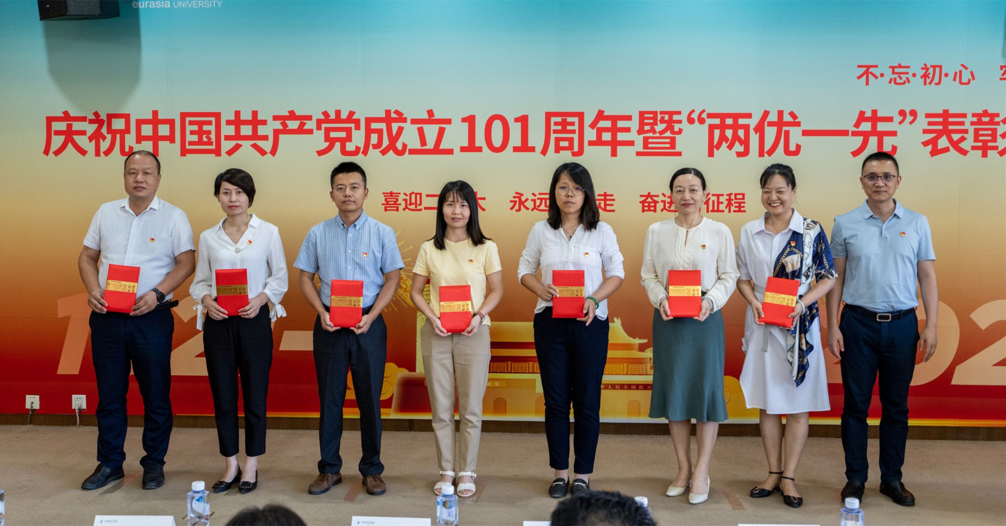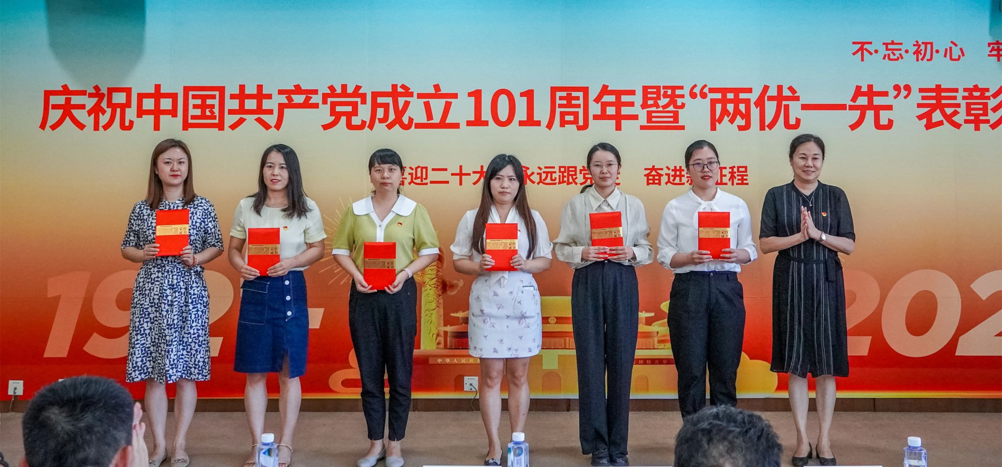 先进基层党组织代表王先昌同志、优秀共产党员教师代表芦白茹同志和学生代表罗永琴同志在他们各自的发言中,也分别从自身工作、学习和生活出发,谈到了作为优秀共产党员的初心和坚守。