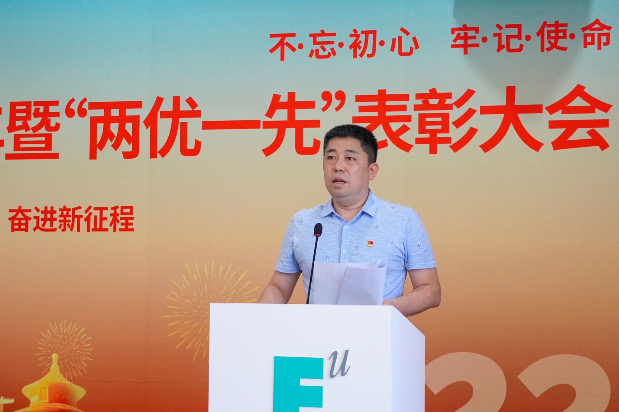 校党委书记于孟晨同志为获得先进基层党组织代表颁奖
