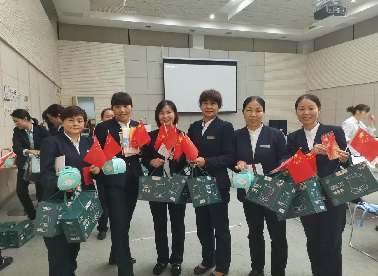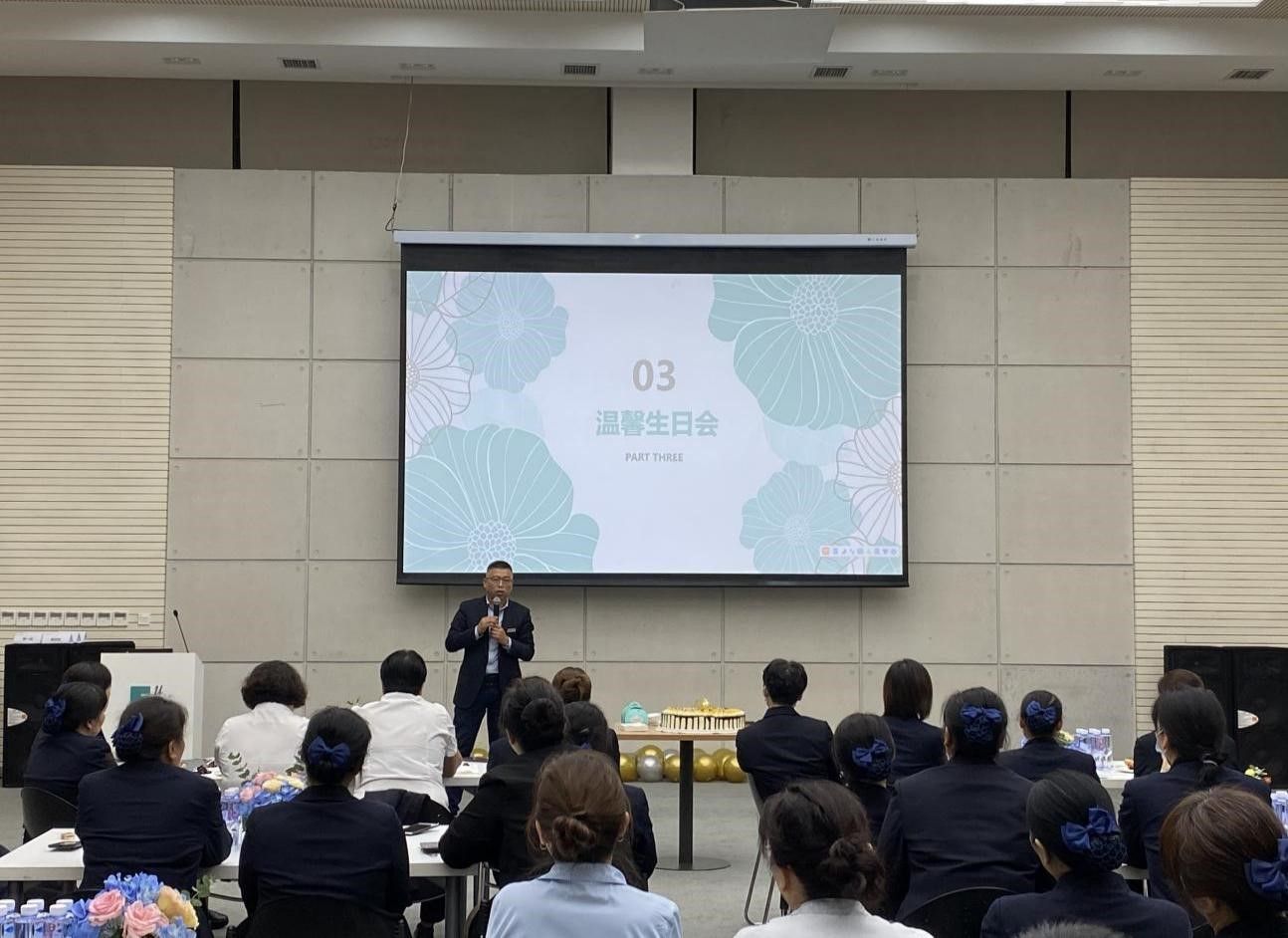 在“温馨生日Part”环节中,后勤集团党总支书记、总经理任龙刚同志亲临现场,共庆祖国72华诞,并代表集团对一线基层员工送来祝福。任龙刚书记要求全体党员员工要积极转化思想,全面落实“以客户为中心”的服务理念,为客户提供便捷、高效、舒适、专业的管家服务。期间通过“集体生日party”、“心有灵犀猜词活动”、“盲盒抽奖”系列活动,每一位参会伙伴都收获了暖心的生日礼物,感受到了集团的人文关怀,同时提升了团队的向心力及凝聚力,进一步加深了对后勤组织文化的理解与管家服务的认知。
