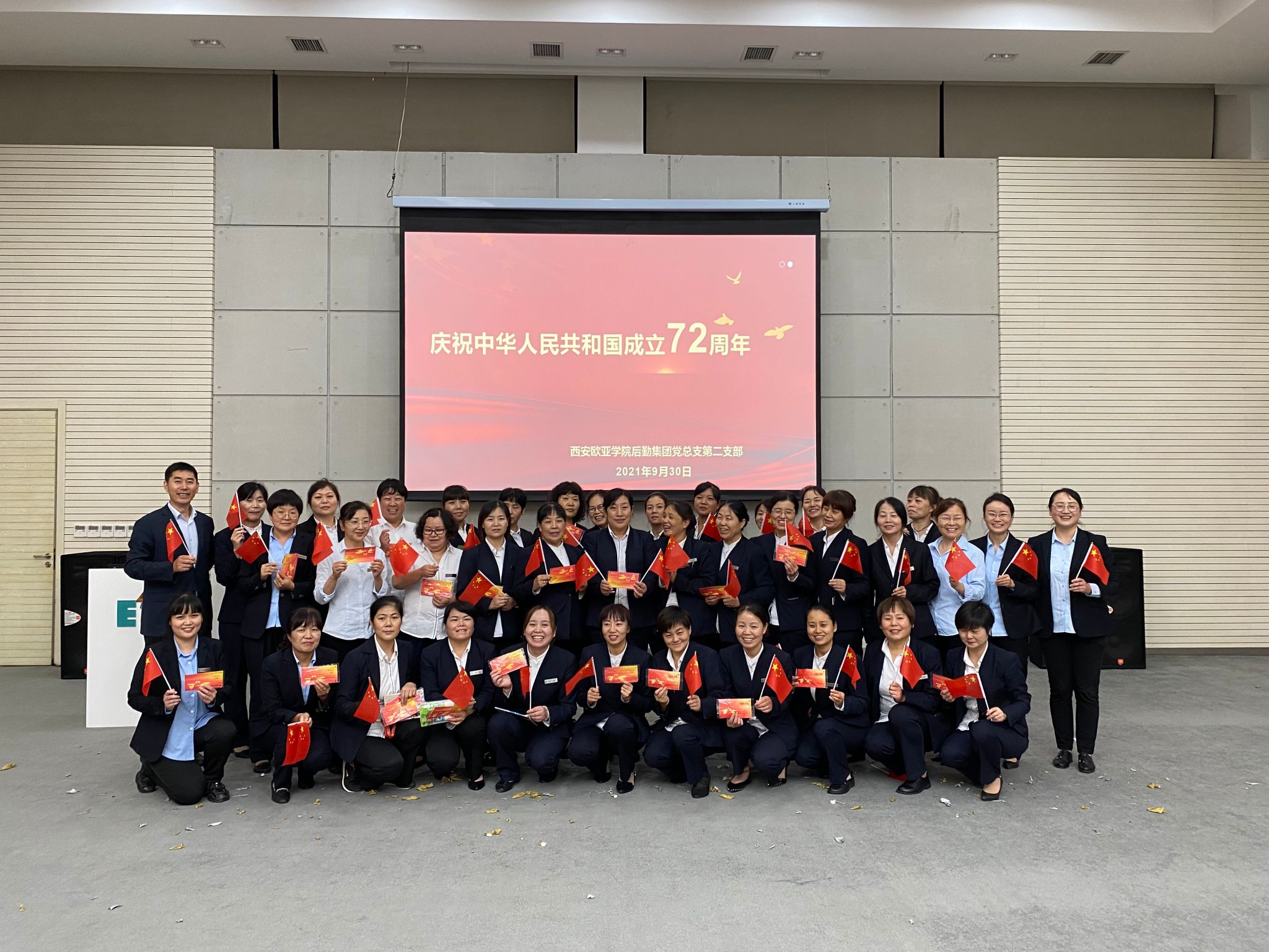 通过此次“员工感谢日暨生日Party”主题党日活动,增进员工对集团的认同度和归属感,使员工紧密地融入到团队,更好的传递后勤集团价值观和核心理念,更快进入角色,同时让员工更好的理解、认同学校教育服务理念和后勤集团工作理念,提升服务满意度。同志们纷纷表示,要始终坚持学党史践初心,秉持欧亚“以学生为中心”的教育服务理念,以更强的担当、更实的作风,做好本职工作,为学校的发展贡献价值智慧,为党的伟大事业助力添彩,向中华人民共和国成立72周年献礼!主题活动最后在全体同志高唱《歌唱祖国》的歌声中圆满落幕。