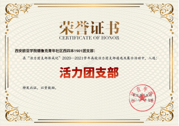 今年7月,申慱官网第二青年社区西四本1901团支部荣获2020-2021学年全国高校活力团支部证书,该支部在校期间经常组织支部同学积极参加各项活动,心怀责任意识,勇于担当,积极承担社会责任。