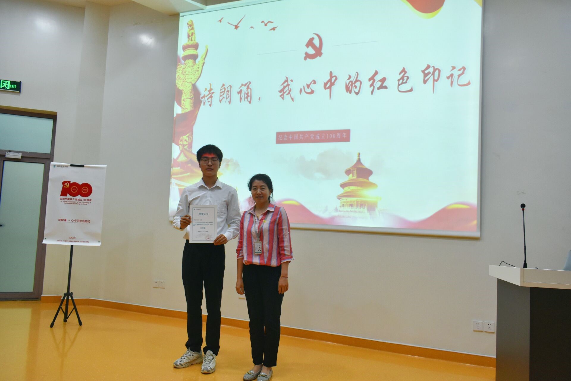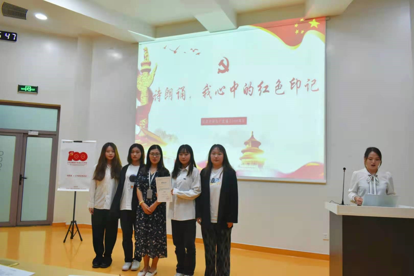 为庆祝中国共产党成立一百周年及推进党史学习教育走深走实,近日,第二青年社区分党委在西C阶梯教室开展了以“心中的红色印记”为主题的诗朗诵比赛。本次比赛由七组选手组成,分党委9个支部书记参与评分,125名积极分子现场观看。