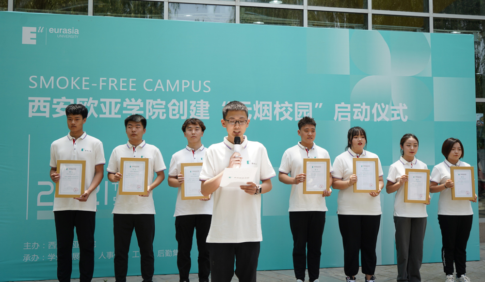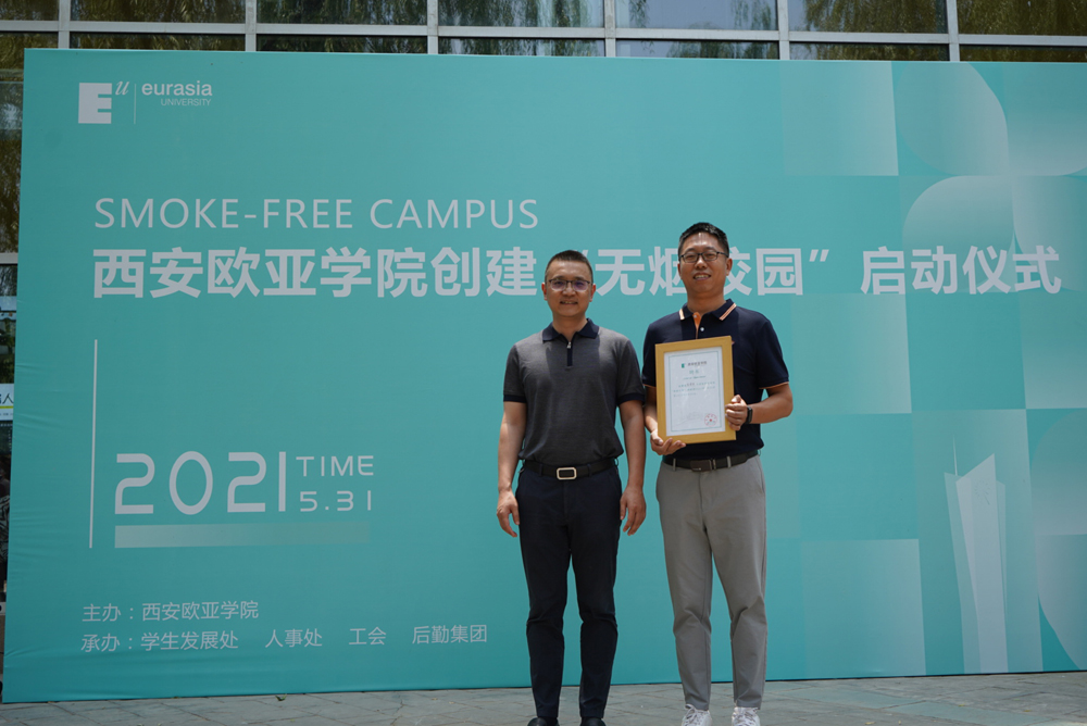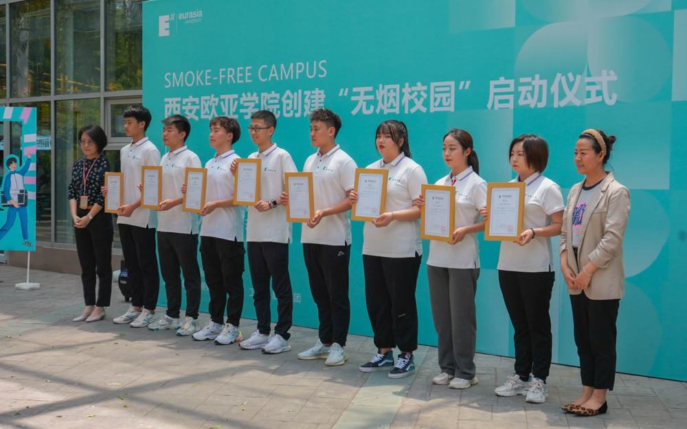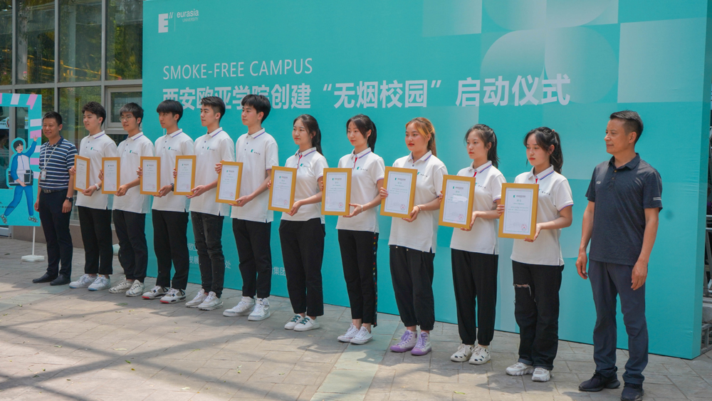 欧亚学院自创建以来,一直重视校园环境和文化建设,以为广大师生提供高质量的学习、工作和生活环境。引导师生文明吸烟,直至建设无烟校园,便是学校文化建设中的一项一以贯之的常态化工作。在前期的校园行为引导过程中,已经自发涌现出了很多热心于校园控烟工作,愿意为文明校园建设做出贡献的老师和学生们。在启动仪式上,学校为他们颁发了“禁烟大使”聘书,以期更大程度发挥他们的引领、带动和辐射作用,影响更多的师生做无烟倡导者。
