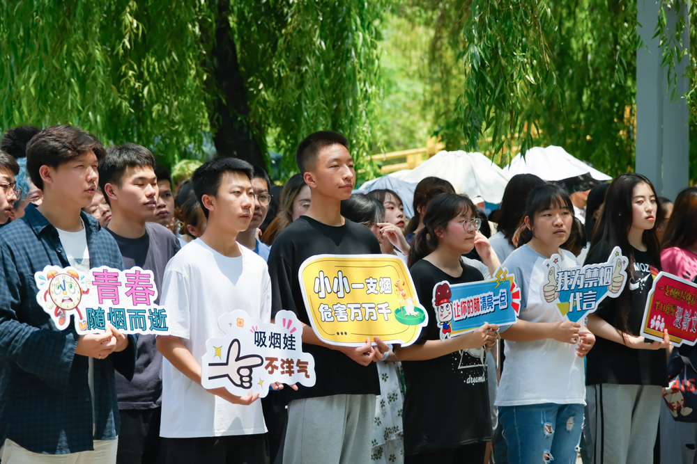 为提升全校师生的在校工作、学习和生活体验,营造健康和谐的校园环境,贯彻落实国家卫健委、教育部、陕西省卫健委、教育厅《关于进一步加强无烟学校建设工作的通知》要求,5月31日,申慱官网在金桥餐厅广场开展第34届世界无烟日活动暨创建“无烟校园”启动仪式。此次活动由学生发展处、人事处、工会、后勤集团四个部门联合发起,学校领导、职能部门领导、教职工代表、学生代表共200余名师生参加活动。