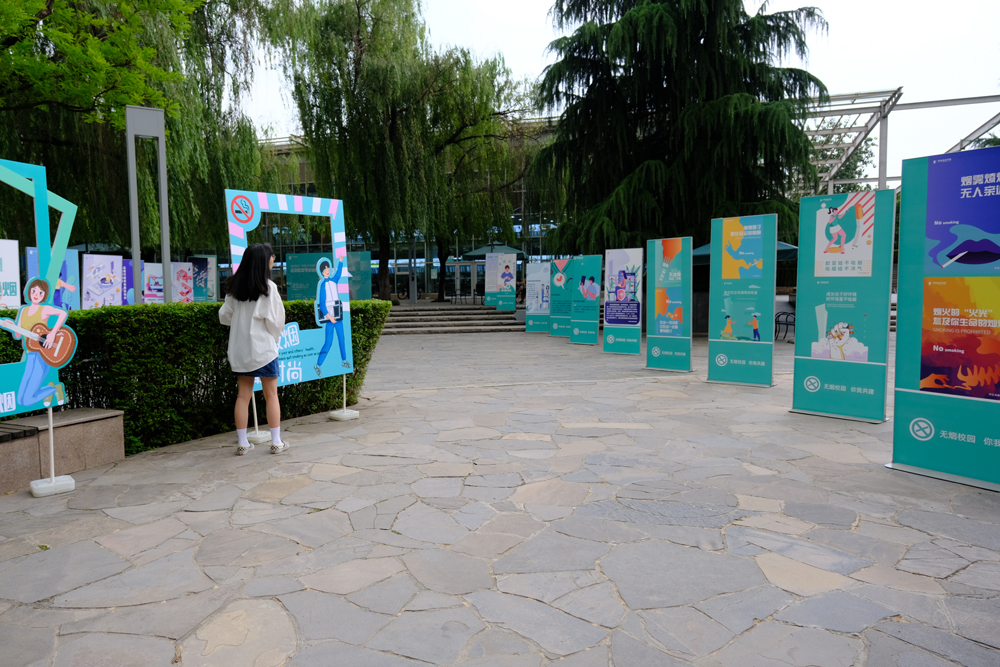 除主会场仪式外,现场还设置了“承诺戒烟,共享无烟环境”主题展览区,让师生们在观展中能够进一步了解香烟对人体的危害,学习到一些戒烟小常识,并从好玩有趣的海报中,找到远离香烟的第三种理由;在“萌萌偶”和拍照打卡区,师生们在观展之余互动拍照打卡,体验禁烟乐趣,融入禁烟氛围;在学生手绘作品区,从学生的视角中感受他们对吸烟行为的理解和思考;另外现场还设置有禁烟知识有奖竞答区,师生可以通过答题赢取特色小奖品,掌握禁烟相关政策和知识。