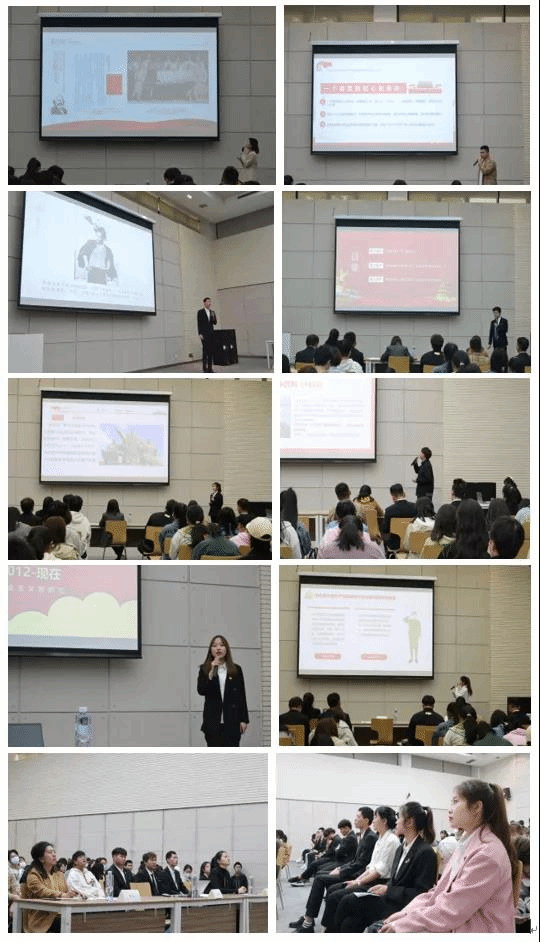 比赛在激昂奋进又富有激情的团歌演唱中拉开帷幕。参赛选手们准备充分、内容全面,通过讲解伟人故事、引用传统文化以及展示相关视频内容等风格形式多样的展示,既有理论宣讲,又密切结合团员青年爱国主义教育和生活实际,向大家分享他们对于党的理解和歌颂,带着在场的所有观众们一起回眸党的百年岁月。