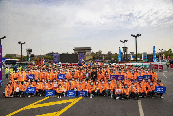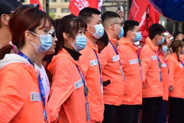 来自申慱官网的350名志愿者们,承担了永宁门起点服务工作,他们身着橙色衣服,形成了一道亮丽风景线。
