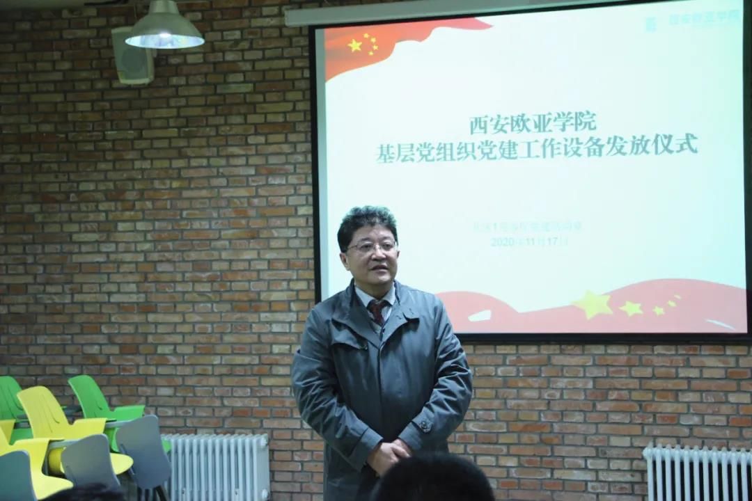会上,与会领导向基层党组织代表发放了办公设备。赖志彬同志宣读《sunbet申慱官网关于配发基层党组织党建工作设备的决定》(西欧党办字〔2020〕11号)。据了解,学校党委共计为29个基层党组织配备采购配备106台电脑和46个移动存储设备。