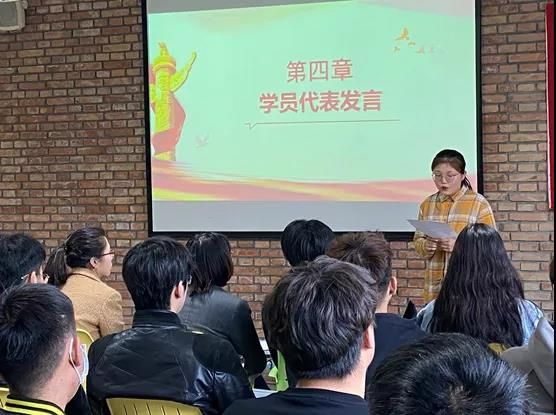 学员代表杨婉萍同学发言,表达了作为一名入党积极分子,应当时刻把党的宗旨印在心中,努力学习党的历史和理论知识,不断提高自己的政治素质和党性修养,进一步端正入党动机,坚定入党决心,争取早日成为一名合格的共产党员。在座的同学们都表示认同。