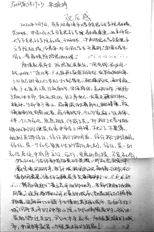 最后我们用欧亚学院小学教育专业1704班同学徐磊在学习之后所写的一段文字给这堂思政课注脚:
