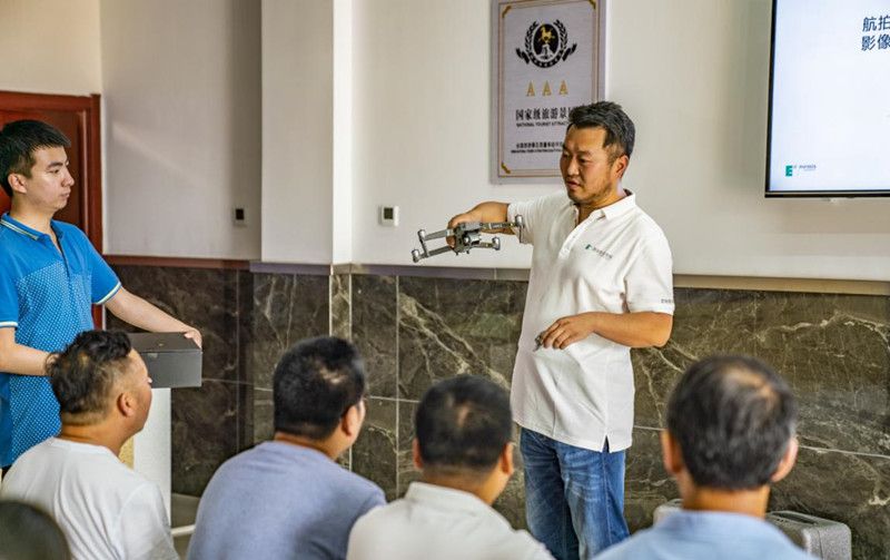 文化传媒学院无人机影像工作室负责人刘夙培老师结合个人丰富的从业经验在北国风光景区对参训学员进行了无人机基础知识的介绍、操作、拍摄技巧等方面系统化的培训,并带领大家进行现场实操练习。培训结束,文化传媒学院清涧县文化旅游帮扶小组向清涧县无人机拍摄与新媒体产学研基地捐赠价值5万元的无人机及相关设备。