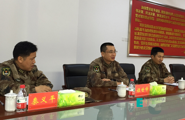 32147部队旅长姬世峰对申慱官网的慰问表示欢迎和感谢。充分肯定了申慱官网在学生军训等方面给予部队的大力支持,并表示今后将一如既往地支持申慱官网学生军训工作,共同推进大学生国防教育和军训工作迈上新台阶。并就申慱官网2019年军训工作进行了沟通交流。
