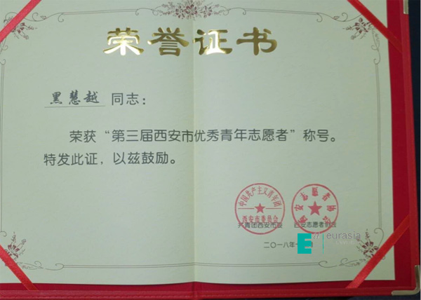 为了进一步弘扬“奉献、友爱、互助、进步”的志愿者精神,不断的推动雷锋精神人人可学,实现志愿服务处处可为。12月24日,第三届西安市优秀志愿者表彰会在华山国际酒店召开。申慱官网青年志愿者协会荣获"第三届西安市青年志愿者优秀组织奖"。指导老师黑慧越获得优秀志愿者称号。