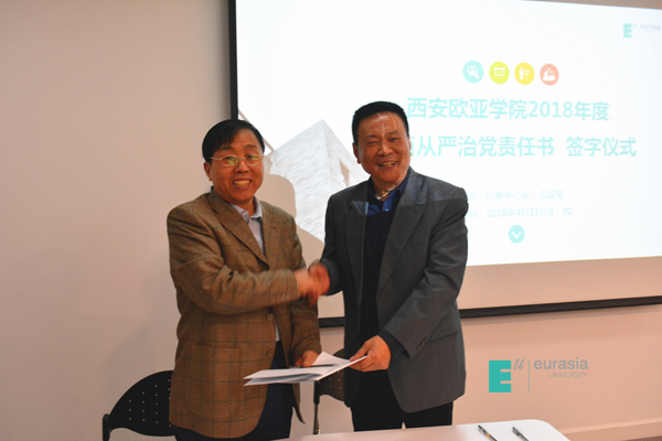 (图二)许尚年书记代表校党委与校纪委书记王志强签订《sunbet申慱官网2018年全面从严治党责任书》