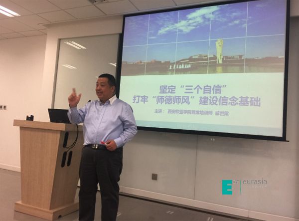 今天戚世梁教授给欧亚新入职青年教师所讲授的《坚定“三个自信” 打牢“师德师风”建设信念基础》的师德教育课,仅是欧亚师德教育讲座的第一课,后面还将安排有戚世梁教授的师德教育系列讲座课中的另两项讲座。