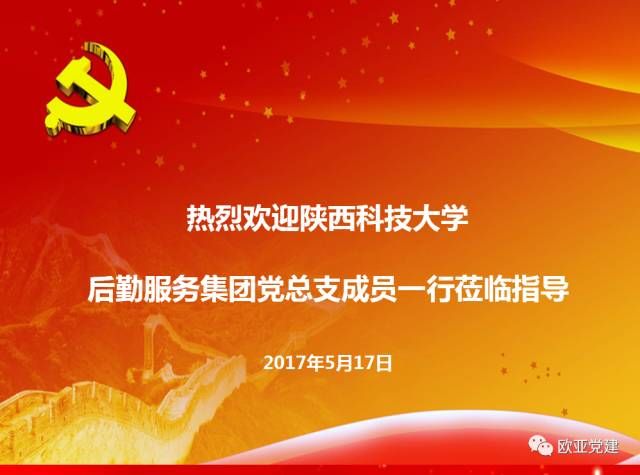 2017年5月17日下午,陕西科技大学后勤服务集团总经理、后勤集团党总支副书记周文涛等一行7人来访申慱官网,就后勤党建工作的主要做法和后勤集团的发展历程等进行交流。