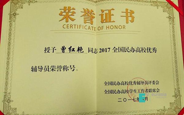 在青年社区中,涌现出了一批品德兼优、业务能力强并且具有欧亚气质的辅导员老师,曾红艳老师就是其中一员。她在工作中始终坚持“以学生为中心”,勇于担当,有较强的责任心。平时不断加强学习,提高自身业务水平,及时对工作进行总结与反思,获得了更好的工作效果。曾红艳老师的获奖,极大的鼓舞了全校社区老师的士气,也是对sunbet申慱官网学生事务工作的肯定。