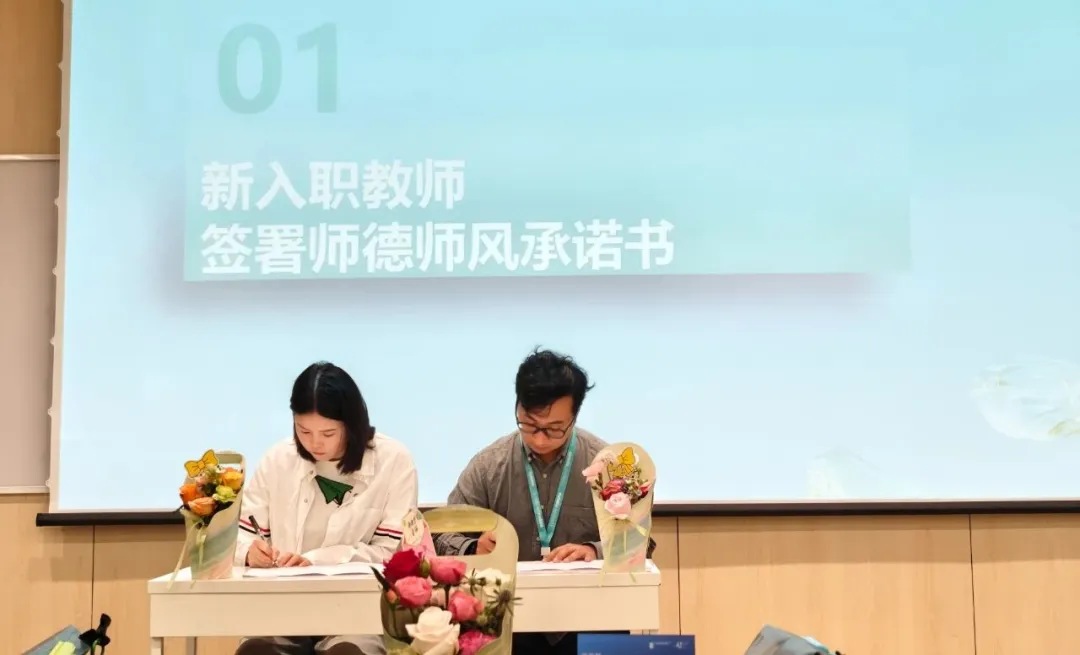庆祝活动在庄重而温馨的氛围中拉开帷幕。活动伊始,学院新入职教师举行了庄严的师德师风承诺书签署仪式。一份份承诺书,承载着新教师们对教育事业的无限热爱与坚定信念,彰显了他们恪守师德、潜心育人、为人师表的决心,为学院教师队伍建设注入了新鲜血液与纯净活力。