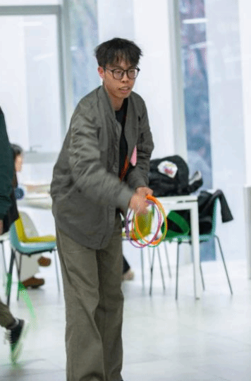 开放式学习区进行的是“元宵趣投环。同学们按照游戏规则,在指定位置投掷彩圈,现场秩序井然。过程中既有技巧展示,也有互动鼓励,营造了积极向上的集体氛围。