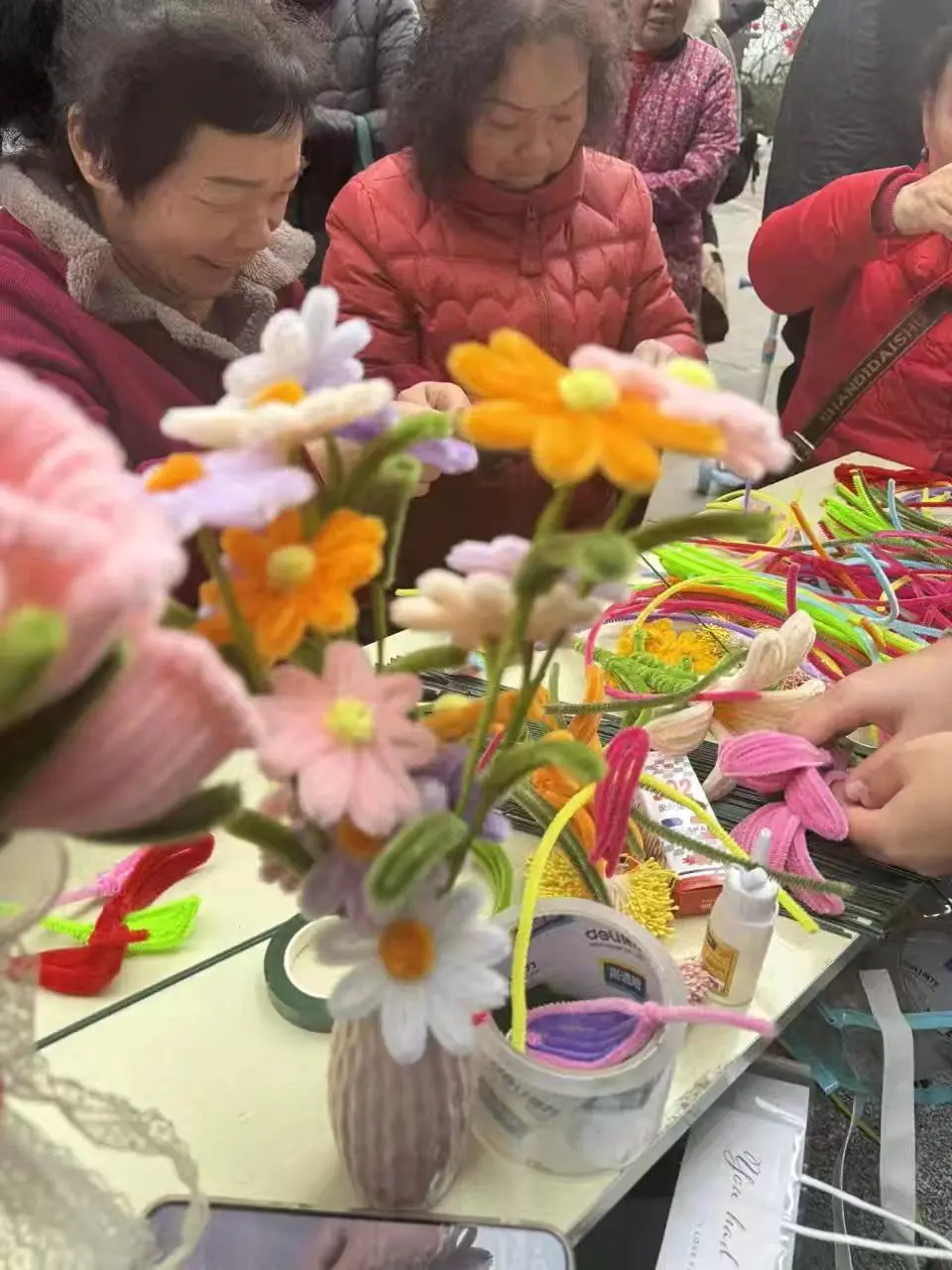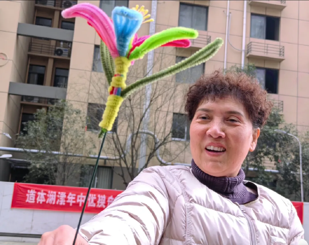 在“非遗绒花” 制作台前,志愿者们化身“小老师”,一遍遍演示、一次次鼓励。一根根绒线,在老人和孩子们的手中变成了栩栩如生的花朵。绒花虽小,却承载着温情与文化的传承。