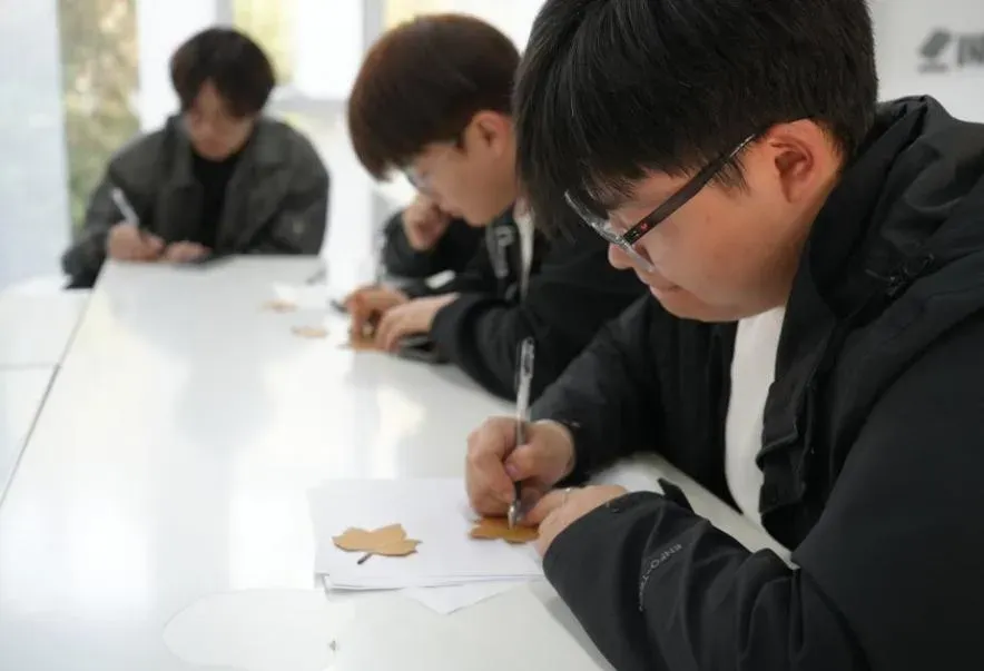 树叶语录创作同样充满创意:同学们用形态各异的秋叶制作便利贴,在叶片上写下 “植此青绿,共护家园”“种下希望,收获美好” 等植树节寄语,再将这些带着温度的叶片拼贴成创意作品。自然之美与青春心意交融,让环保理念以更鲜活的方式扎根心中。