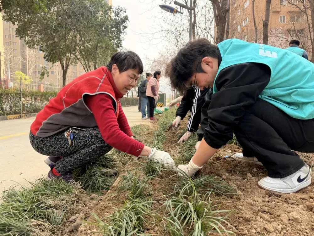 3月11日,在第48个植树节来临之际,第一青年社区分党委联合西姜欣居社区党组织,以主题党日+志愿服务形式,开展“植此青绿,共创未来,E起行动”护绿共建活动。此次活动深入贯彻习近平生态文明思想,践行“绿水青山就是金山银山”理念,把党建引领、劳动教育、社区服务深度融合,既为社区添绿增色,也让青年党员在实践中锤炼党性、涵养初心,筑牢生态文明思想根基。