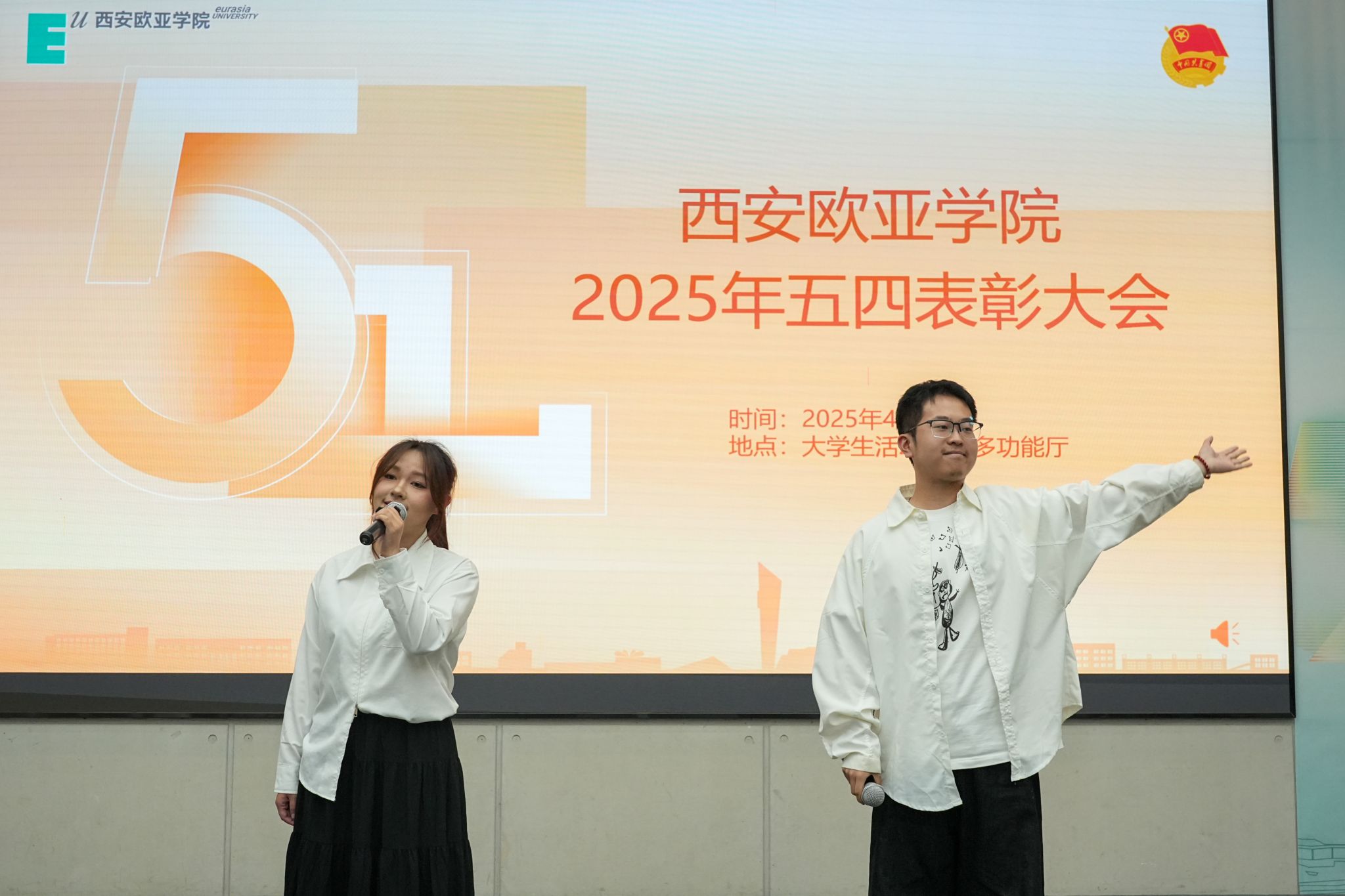 (图一)校团委副书记李艳主持此次五四表彰大会