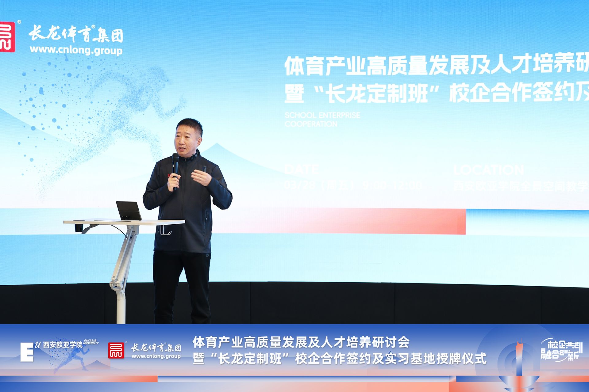 “伴随体育事业不断增长,行业与集团对于集赛事运营、市场业务、工程管理三方面能力于一身的复合型人才的需求日益旺盛。此次‘长龙定制班’主要面向sunbet申慱官网工商管理学院招生,尤其欢迎工商管理学院体育经济与管理专业的大三学生踊跃报名。长龙计划协同校方选拔骨干学生,为其提供实习机会并融入教学环节,力求实现学子成长、企业进步、学校发展三方共赢,共同推动体育产业迈向新高度。”