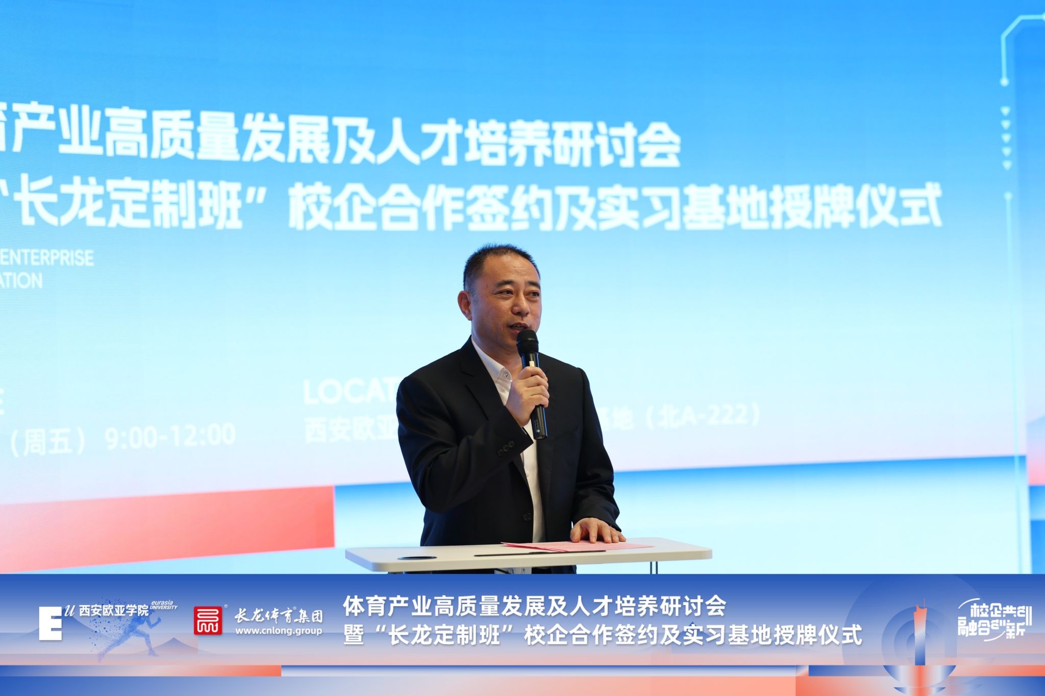 “在数字化加速升级与国际化拓展的大环境下,体育产业人才短缺问题日益凸显,陕体集团十分认可实践育人对于填补人才缺口的关键作用。未来,陕体集团将携手长龙体育集团等,整合多方资源,为欧亚学子打造充足的实习与就业岗位,搭建起人才成长与产业发展紧密相连的桥梁,全方位助力学生职业发展,共同为体育产业的高质量发展注入强劲动力。”