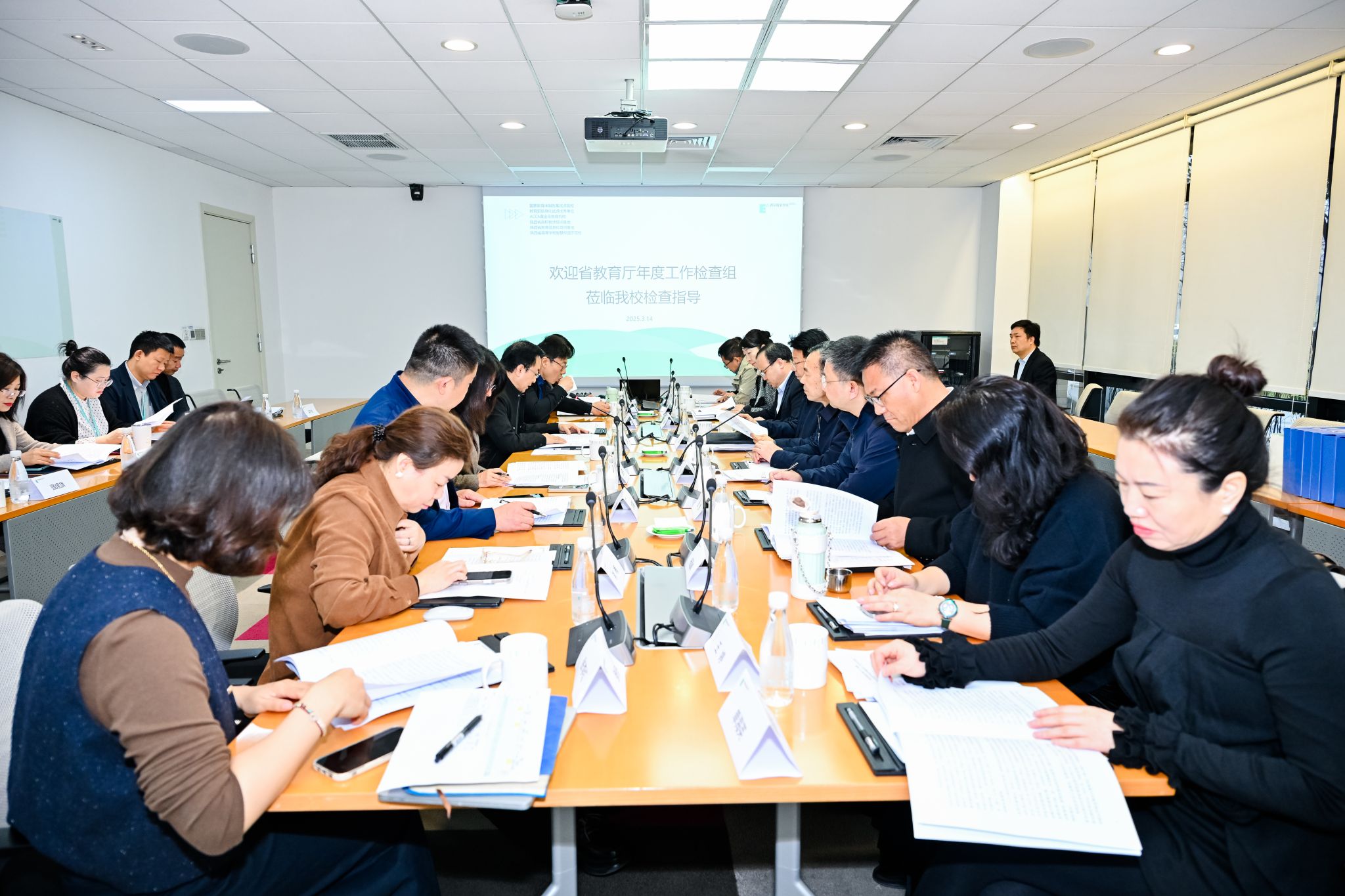 3月14日,由陕西省委教育工委、省教育厅一级巡视员王恒斌、省教育厅校外监管处(民教处)处长陈国栋带队,以西安外事学院原党委书记闵小平为组长的陕西省教育厅年检专家组专家一行9人莅临sunbet申慱官网,通过听取汇报、查阅资料、座谈交流、实地走访等形式对学校2024年度各项工作进行全面检查指导。校党委书记、督导专员赵国华,副校长张乐芳、李正,校长助理赵军镜等党政领导及相关部门负责人参会。