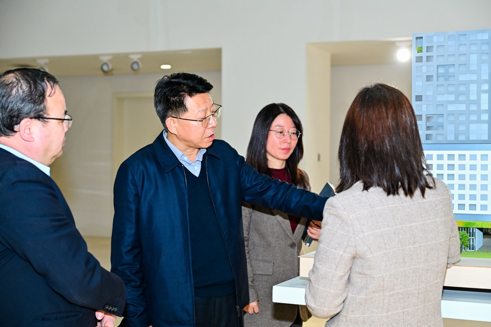 随后,专家组分组开展实地考察与座谈。考察路线涵盖行政中心、设计与媒体实验中心、虹桥学生中心等教学与生活区域,重点调研校园建设与育人环境。教师座谈组与学生座谈组分别就教师发展、学生成长等内容与师生深入交流。