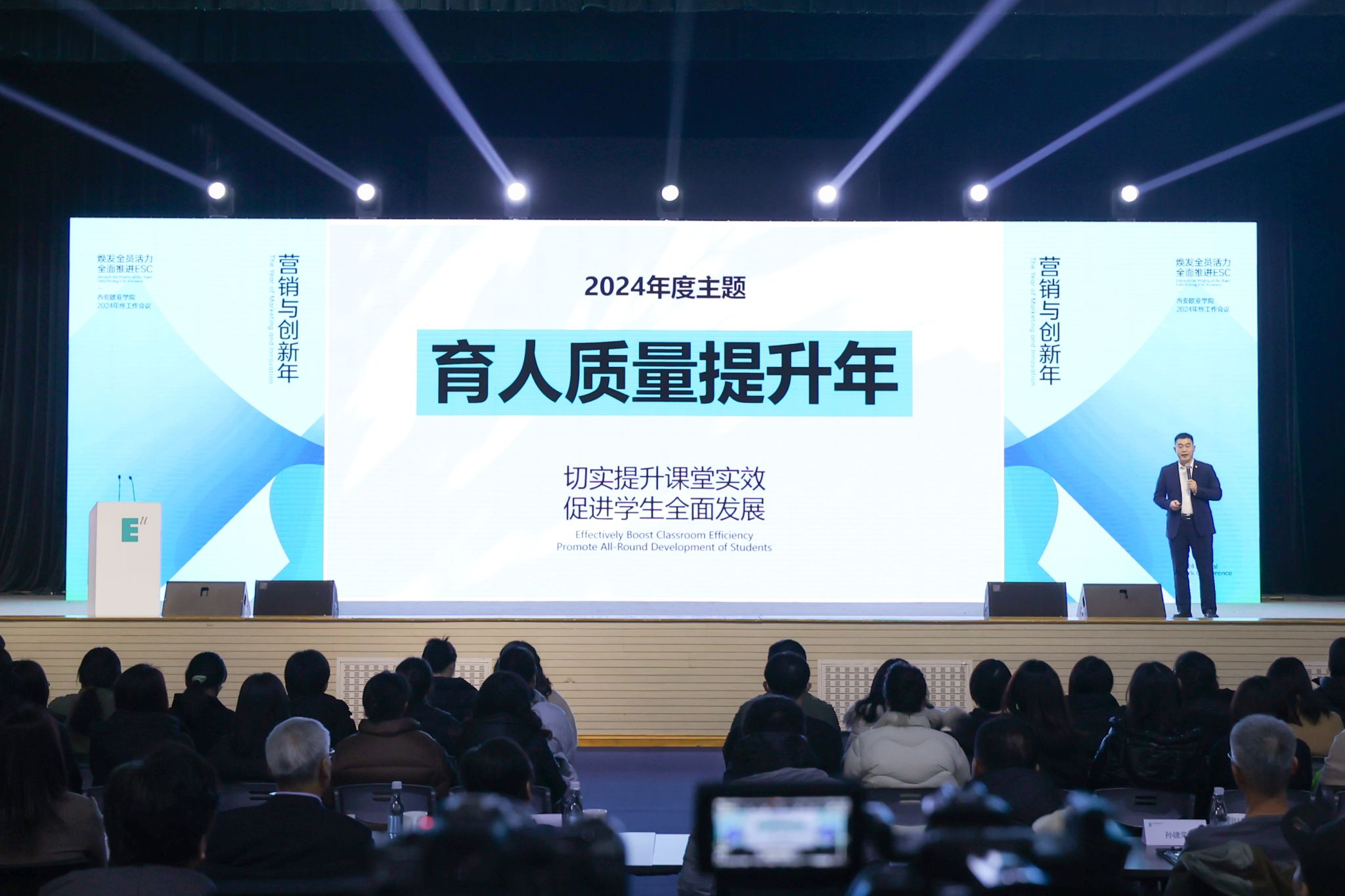 2025年,学校的年度主题是“营销与创新年”。如何理解营销,怎样进行创新,激发广大师生员工的创新思维,以提升全员营销与创新能力?本次会议精心设计了三场价值观与文化共享报告,开拓全员创新思维,助力学校创新发展。
