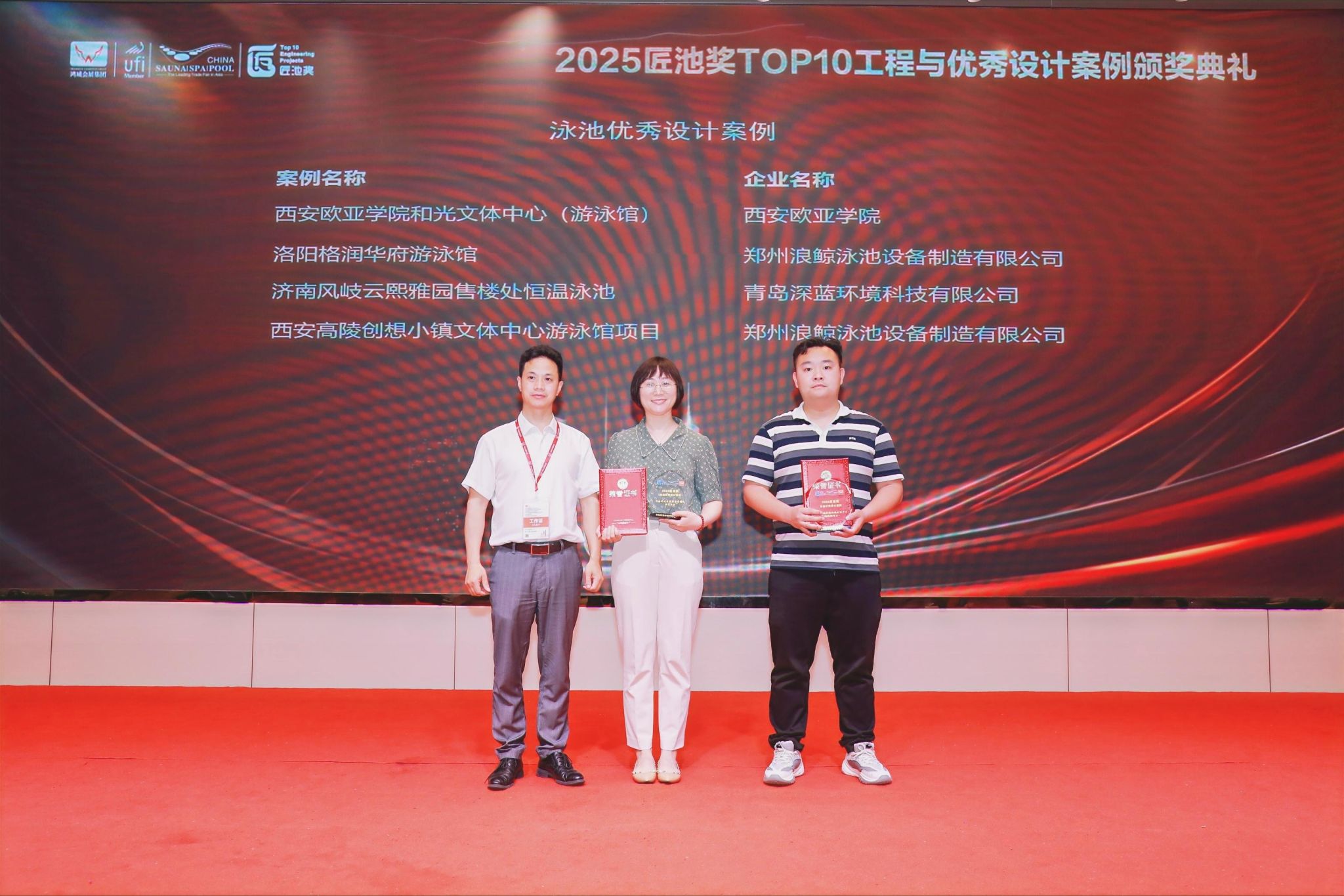 5月10日晚,由广东鸿威国际会展集团主办的2025“匠池奖”泳池温泉水上乐园会所 TOP10 工程与优秀设计案例评选颁奖典礼在广州·粤大金融城国际酒店举行,sunbet申慱官网和光文体中心游泳馆荣获“泳池优秀设计案例”奖,标志着欧亚游泳馆的设计及建设管理品质获得了全国泳池行业的肯定与认可。