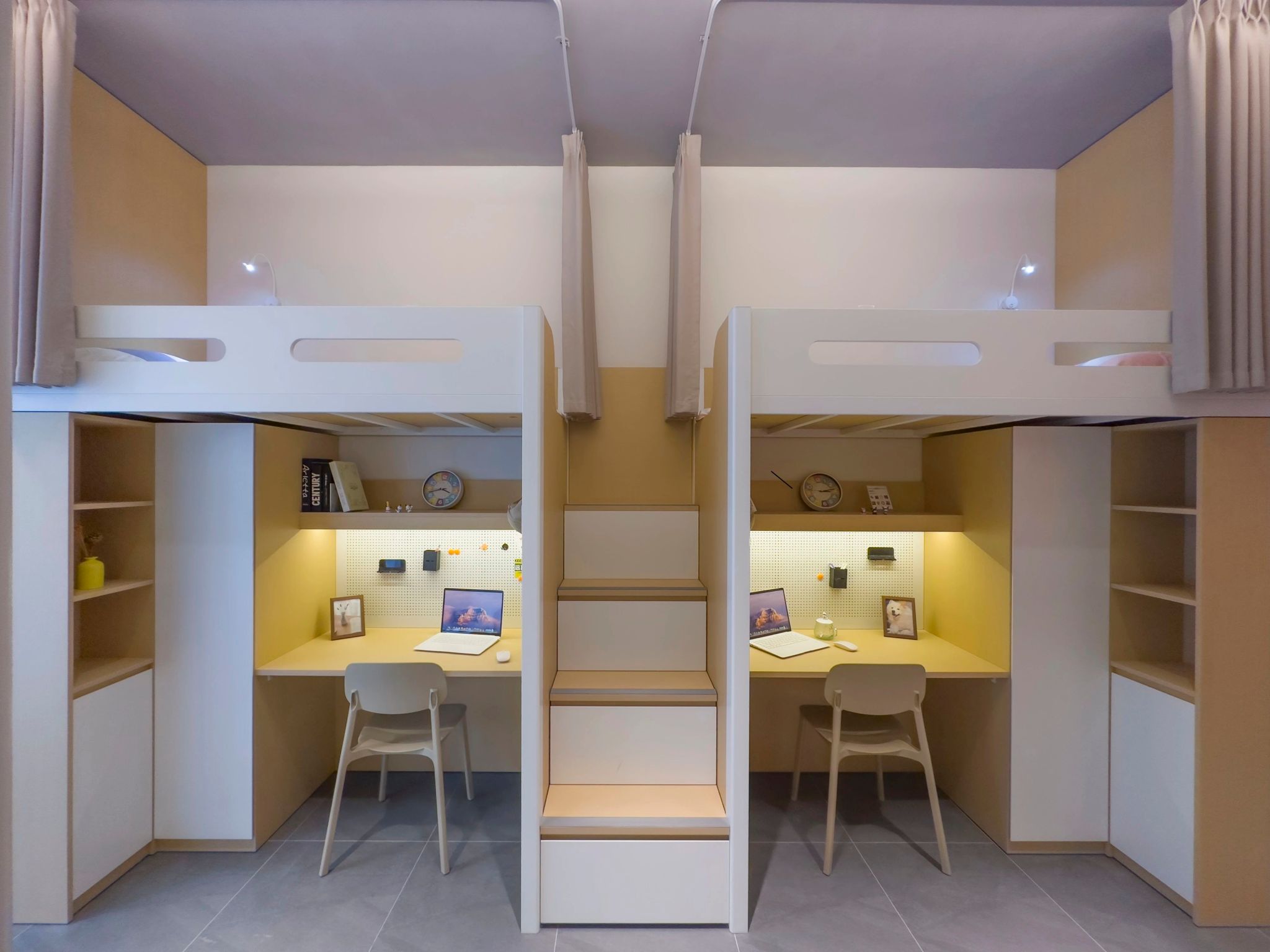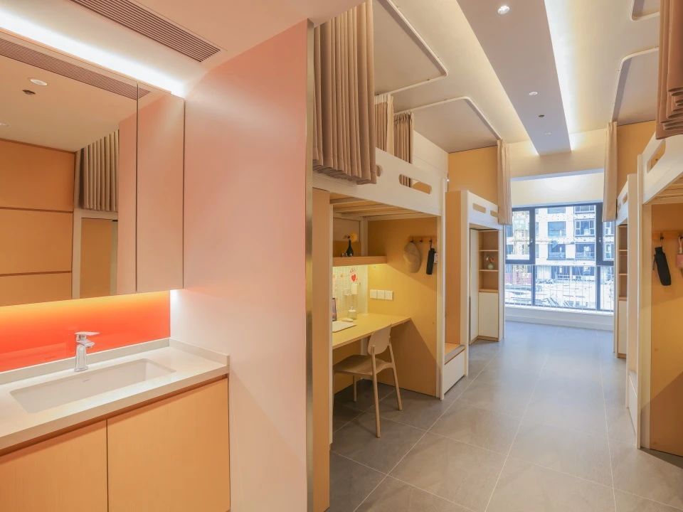 今天参观春山里公寓,看到里面的设施真的非常人性化。欧亚对学生宿舍的改造十分成功,尤其注重个人隐私边界,很符合当下新青年的生活习惯。无论是洗漱空间、卫浴空间、阳台的植物景观,包括上床下桌的楼梯可以用作储物空间使用,这些都是从学生的需求出发的。