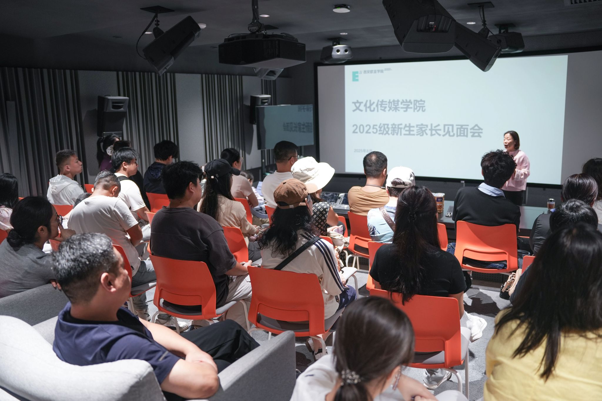 在杜比审听混录调色实验室,副院长曹小娟与各专业负责人、主管一起,为新生及家长详细讲解专业特色与发展前景。直播同步在线开启,吸引5000余人观看、100余次分享,收获近4万点赞,多名新生及家长参与互动和抽奖。